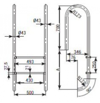 Gefertigt aus Edelstahl V2A, Einstiegshilfe (Durchmesser 43 mm), hochglanzpoliert, Anti-Rutsch-Pads
